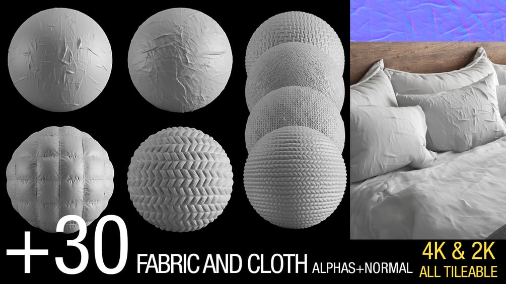 +30 fabric and wrinckle ALPHAS+NORMAL v2 (4K&2K ,All tileable)